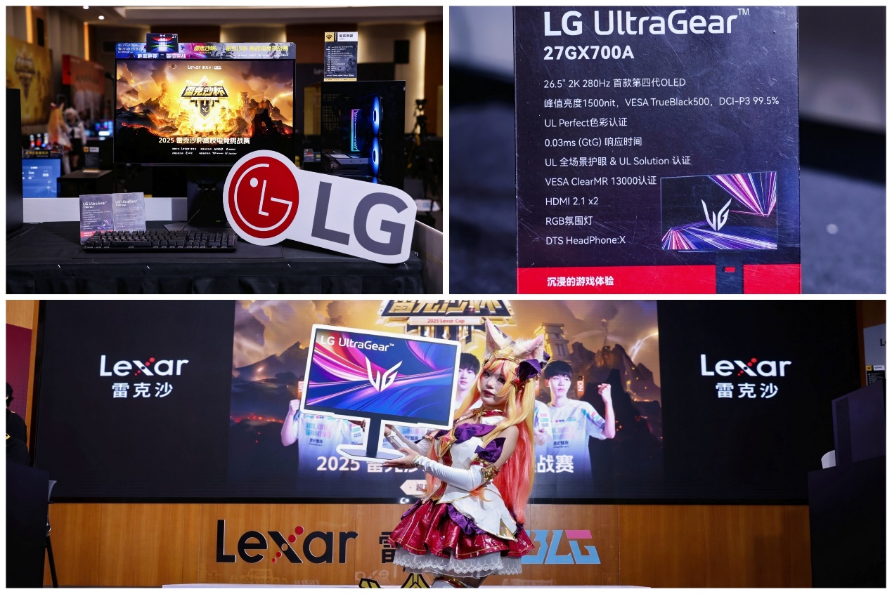 此外,由LG提供的第四代OLED显示器27GX700A,采用4层RGB堆叠结构,以其高达1500尼特的峰值亮度、True Black500认证和0.03ms的响应时间,为选手们呈现出极致清晰、色彩纯净的画面。同期在展台展示的27G810A双模电竞显示器,更支持4K 180Hz与FHD 360Hz模式一键切换。