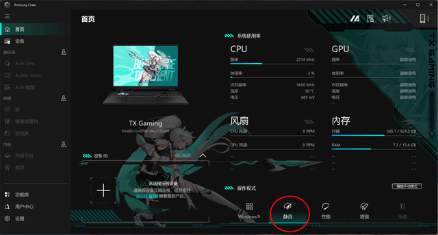 基础优化二:在奥创中心将散热设置为静音模式