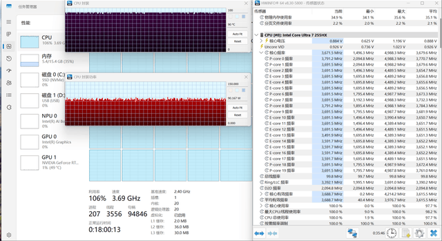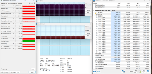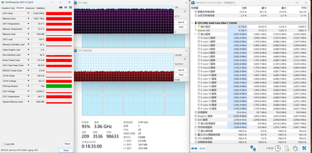 Ultra 7 255HX性能出色,RTX 5060满功率输出
