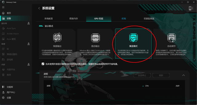 基础优化一:在奥创中心-设备-GPU性能中设置为集显模式