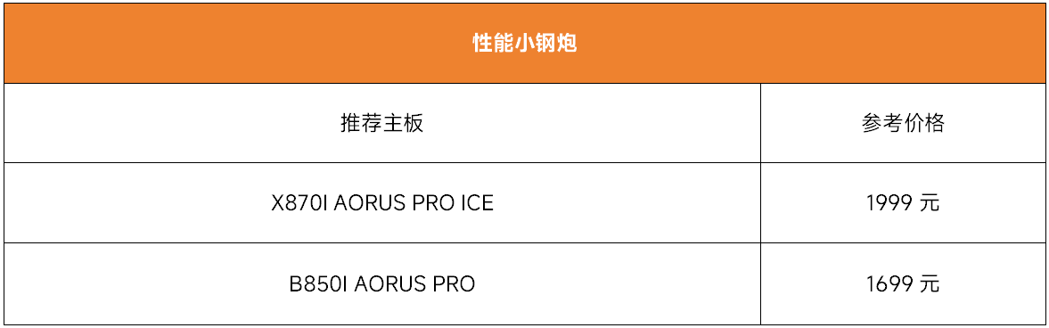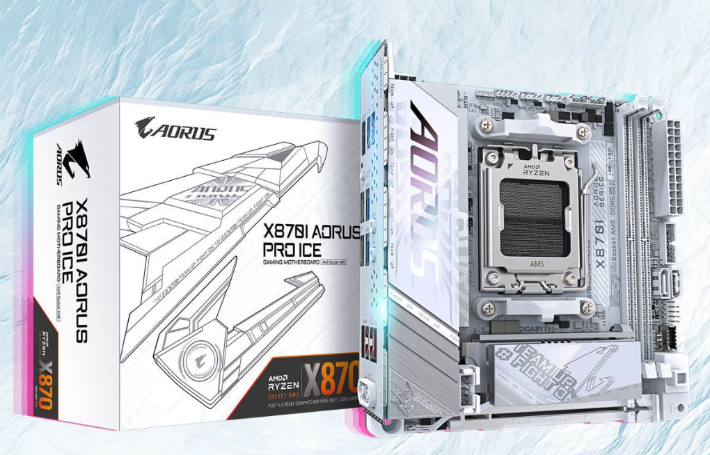 此外,喜欢ITX小主机的玩家可以选择X870I AORUS PRO ICE迷你冰雕和B850I AORUS PRO迷你雕。两款主板都采用Mini-ATX架构,8+2+1相数字供电设计,10层2盎司铜低阻抗PCB,标配2.5Gbps千兆网卡和WIFI 7无线网卡迷你,冰雕还搭载USB 4接口。虽说按两款主板的供电规格来看,搭配任何一款锐龙9000处理器都没问题,不过考虑到ITX机箱的散热条件相对严苛,所以推荐大家搭配锐龙9 9900X级别的处理器就可以了。