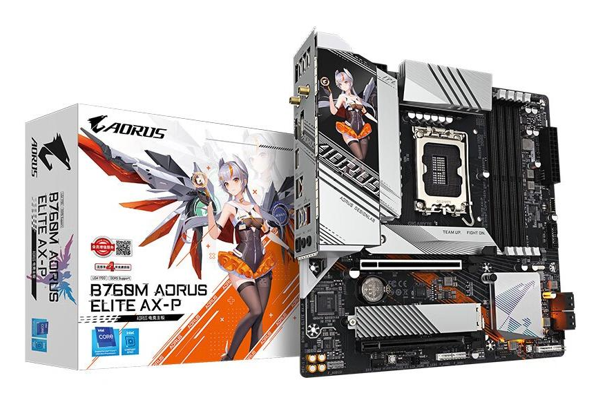 技嘉B760M AORUS ELITE AX-P雕妹主板拥有雕妹的二次元设计元素,除了VRM散热装甲上有雕妹图像之外,甚至连开机LOGO和BIOS界面也进行了雕妹形象定制,对于追求二次元定制的玩家来说拥有无法拒绝的吸引力。主板配备12+1+1相数字供电设计,并搭配了6层2盎司铜PCB与优质电感电容,因此拥有出色的电气性能。4条DDR5内存插槽支持7800(OC)高频内存,同时在独家D5黑科技加持下,能够进一步提升内存带宽、降低内存延迟,为玩家提供更加流畅的使用体验。